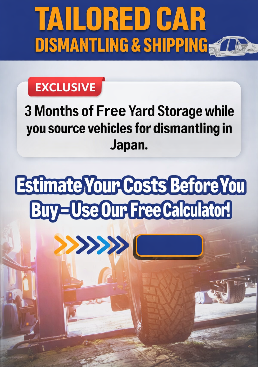 - 3 Months of Free Yard Storage while you source vehicles for dismantling in Japan.